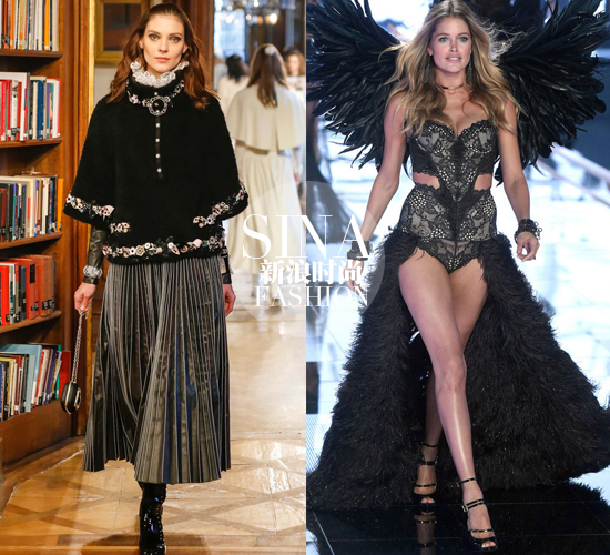 除此之外,还有一大看点就是新旧“一姐”的较量。新任一姐Joan Smalls选择为维秘站台,而老牌一姐Lara Stone则是为Chanel走秀。一个火辣性感、一个冷峻端庄,两种风格算是在“一姐”的新老交替中完成了使命。 Chanel新宠 PK 新晋“天使”  Chanel新宠 PK 新晋“天使”
