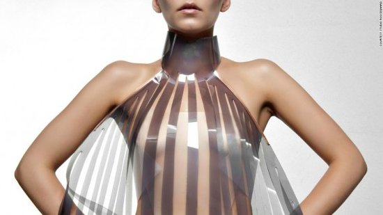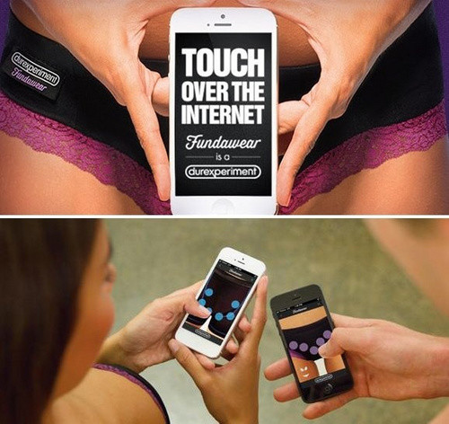 健康和运动监测仅仅是可穿戴式智能设备的一个方向,时尚领域的应用也是不可忽视的。荷兰设计团队工作室Roosegart已经开发出一种有趣的智能情趣礼服,由用户的心跳次数控制,皮革和智能材料会随着心跳数的增加而逐渐透明,不过上身到底性不性感,仁者见仁了。 杜蕾斯智能情趣内衣 超越时空的爱抚  Fundawear