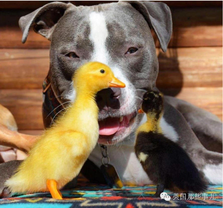 姐们后来又收养了2只孤儿鸭子.....她一开始其实很忐忑,不知道家里那5只能不能接受画风差异有点大的鸭星人,不过让她惊讶的是,Jake在看到这2只鸭子的第一眼就沦陷了,“2只鸭子到来的第一天晚上,Jake就守在它们旁边,看着它们睡觉”“然而其它4只都是一副冷漠脸,‘好你个铲屎官竟然还敢带鸭子回来’”