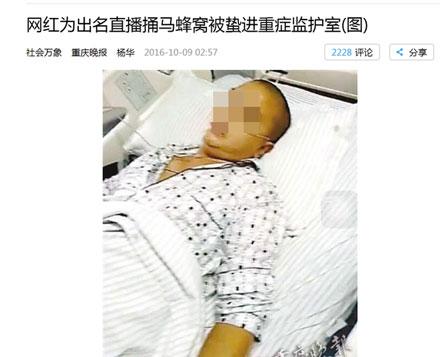 昨天有新闻说,某网红为出名直播捅马蜂窝,结果被蛰进了重症监护室——光医疗费就花了一万多。