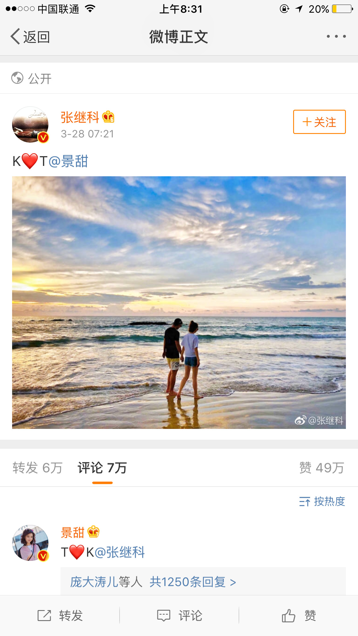 张继科景甜,K爱T终于官宣啦~ - 昨天一大早的撒狗粮! - 公布时间是7:21,景甜生日~嘤嘤嘤,好甜哟~ - 大甜甜起来的有点 ...