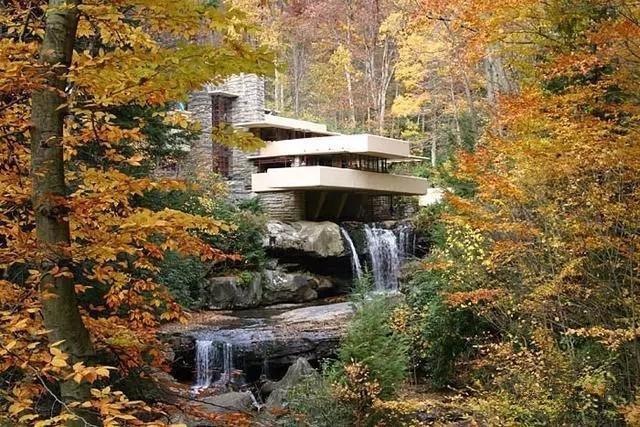 NO.2落水山庄 美国 这幢别墅建于1935年,房子的主人是美国的埃德加·考夫曼(Edgar Kaufman),他是匹兹堡百货商店的巨头,设计者是当时美国极富盛名的建筑师,名字叫福兰克·莱特,他是美国建筑师当中,唯一曾经在邮票上出现的人物。