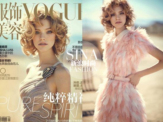 留着胡子,裸着上身的黄晓明就算这么拼,也抵不过人家鹿晗一个微笑,倒数第5名的成绩足以见证一切。 第11名:《VOGUE》 Sasha Luss (110票) 封面品牌:Giorgio Armani 《VOGUE》
