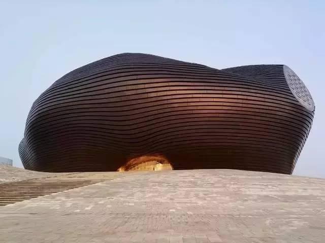 NO8. 鄂尔多斯博物馆 内蒙古 鄂尔多斯城市中心的“太阳”是一座形似不规则飞碟的金属建筑物,它就是鄂尔多斯博物馆。它与周边阳光般放射形状的草坪一同,被规划在一个名为“草原上升起了不落的太阳”的整体方案下,自然,它就是那个中心“太阳”。现在你还无法近距离深入这座建筑,不过看过它庞大的体量和周围景观的设置,你就能猜到它传达了某种意识形态。