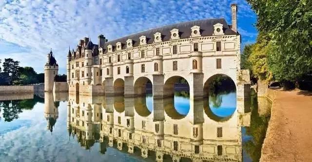NO.14 舍农索城堡 法国 舍农索城堡位于昂布瓦斯以南,依势横跨在谢尔河上,与河流、园林和绿树构成了一幅非常自然和谐的风景画。舍农索城堡建在谢尔河河床上一个老磨坊的两座石墩上。该城堡自1535年后就属于王室领地。1589年11月1日,凯瑟琳太后最后病死。她把多达40万埃居的遗产,馈赠给了她的女仆们,最后就象圆明园一样,这座城堡接受了革命的战火的洗礼,里面的奇珍异宝流入黑市。