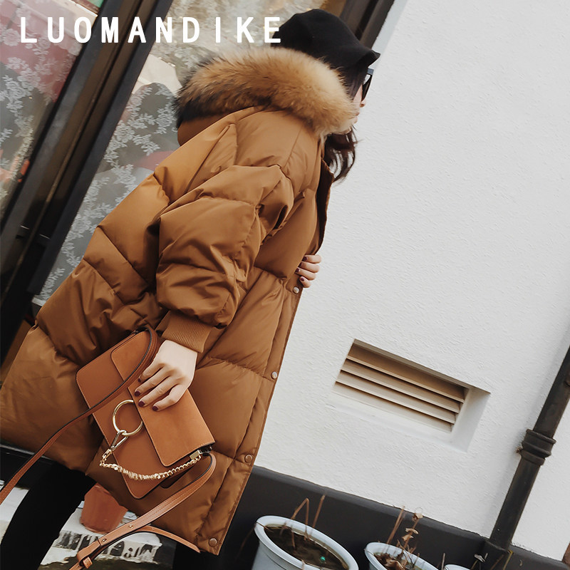 2016新款韩版真貉子超大毛领焦糖色羽绒服女中长款蝙蝠袖宽松外套