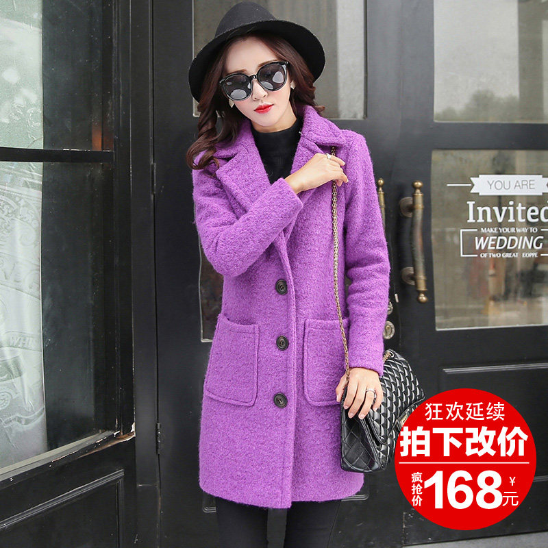 毛呢外套女2016秋冬新款韩版修身妮子大衣女中长款加厚羊毛呢大衣