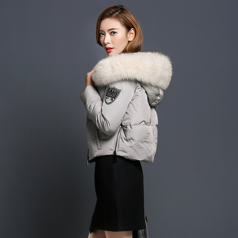 欧洲站2016冬装新款大狐狸毛领修身品牌羽绒服女短款加厚外套女装